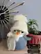 На фото — уютная вязаная игрушка-пингвин (или зимняя птичка) в нежной «молочной» шапочке с большим помпоном и фактурном шарфике. Тельце выполнено ровным полотном серо-голубого оттенка, крылышки аккуратно пришиты, мордочка выразительная: крупные глазки и яркий оранжевый клюв добавляют характера. Шапка сидит «по-настоящему», с мягким отворотом, а шарфик пластичный и красиво драпируется. В целом образ очень тёплый и «зимний», работа выглядит завершённой и продаваемой, а фото аккуратно показывает фактуру и настроение.