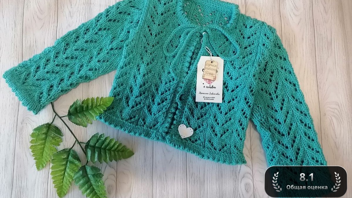 Воздушный бирюзовый жакет словно соткан из морской пены: ажурные «ёлочки» образуют изящную сеточку, пропуская свет и подчёркивая фактурность пряжи. Короткая укороченная модель с поясочком-шнуром на горловине придаёт образу лёгкость, а ровные, аккуратные планки и манжеты делают изделие законченным. Насыщенный оттенок бирюзы играет на контрасте с древесным фоном и подчёркивает спокойную элегантность простого силуэта. Такое изделие будет чудесным акцентом в гардеробе ребёнка или подростка, даря тепло и стильную нотку ручной работы.