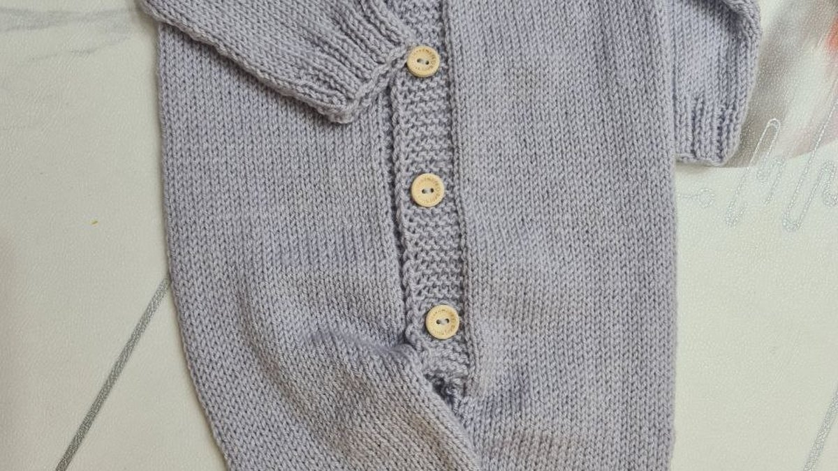 Комбинезон связан методом реглана, используемого для создания целостных изделий без швов. В процессе вязания использована техника лицевой глади для основного полотна и резинки на манжетах и воротнике. Реглановые прибавки выполнены с помощью накидов, образуя аккуратные линии и добавляя изделию декоративные элементы. Петли аккуратно проработаны, что свидетельствует о внимании к деталям и опыте мастера. Вязание начато снизу вверх, с последующим разделением на переднюю и заднюю части, а также рукава вяжутся отдельно, после чего все части соединяются вместе. Дизайн включает лицевые и изнаночные петли, что добавляет изделию уютности и делает его подходящим для малышей. Прочные и удобные кнопки обеспечивают легкость использования, а эластичная резинка гарантирует комфорт ребенку. Эти особенности подчеркивают мастерство и творческий подход автора.