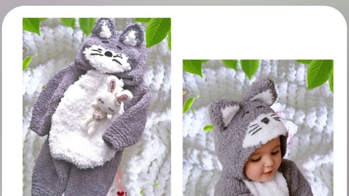 Этот набор из вязаного комбинезона и маленькой игрушки-сувенира выполнен с вниманием к деталям, а его дизайн вдохновлен образом котика. Каждый элемент продуман до мелочей, чтобы создать уютный и привлекательный внешний вид для младенца.