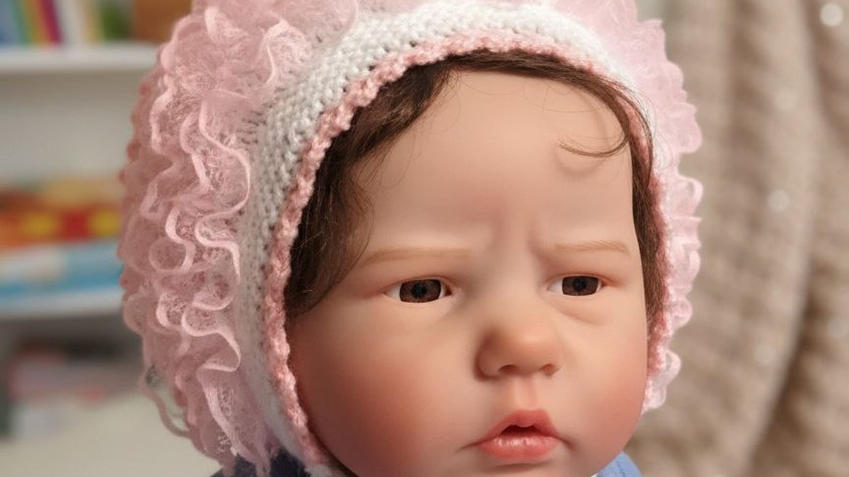 Основа чепчика, судя по фактуре, связана крючком по кругу столбиками без накида (либо полустолбиками) с аккуратными прибавками в зоне затылка. Для точной посадки обычно начинают с донышка: в кольцо амигуруми провязывают стартовый ряд и далее расширяют полотно равномерными прибавками (например, +6 петель в каждом ряду), пока не получится нужный диаметр, соответствующий обхвату головы. Далее вязание переводят в «стенки» без прибавок, формируя глубину чепчика. Для анатомичной формы часто используют укороченные ряды или делят полотно на клинья, но здесь посадка выглядит мягкой и округлой — вероятно, за счёт плотного узора и плавного перехода без резких убавок. Окантовка по лицевому краю выполнена контрастной нитью: один‑два ряда столбиков без накида создают чистую линию. После этого вывязана объёмная оборка: она делается либо из пряжи «травка/букле» отдельным рядом с частыми прибавками, либо классическим способом — в каждую петлю предыдущего ряда провязывают по 2–3 столбика (с накидом или без), чтобы край начал воланиться. Завязки выполнены шнуром (цепочка из воздушных петель с обвязкой или плотный шнур «гусеничка»). Концы можно дополнительно закрепить узелком, чтобы шнур не распускался и держал форму после стирки.