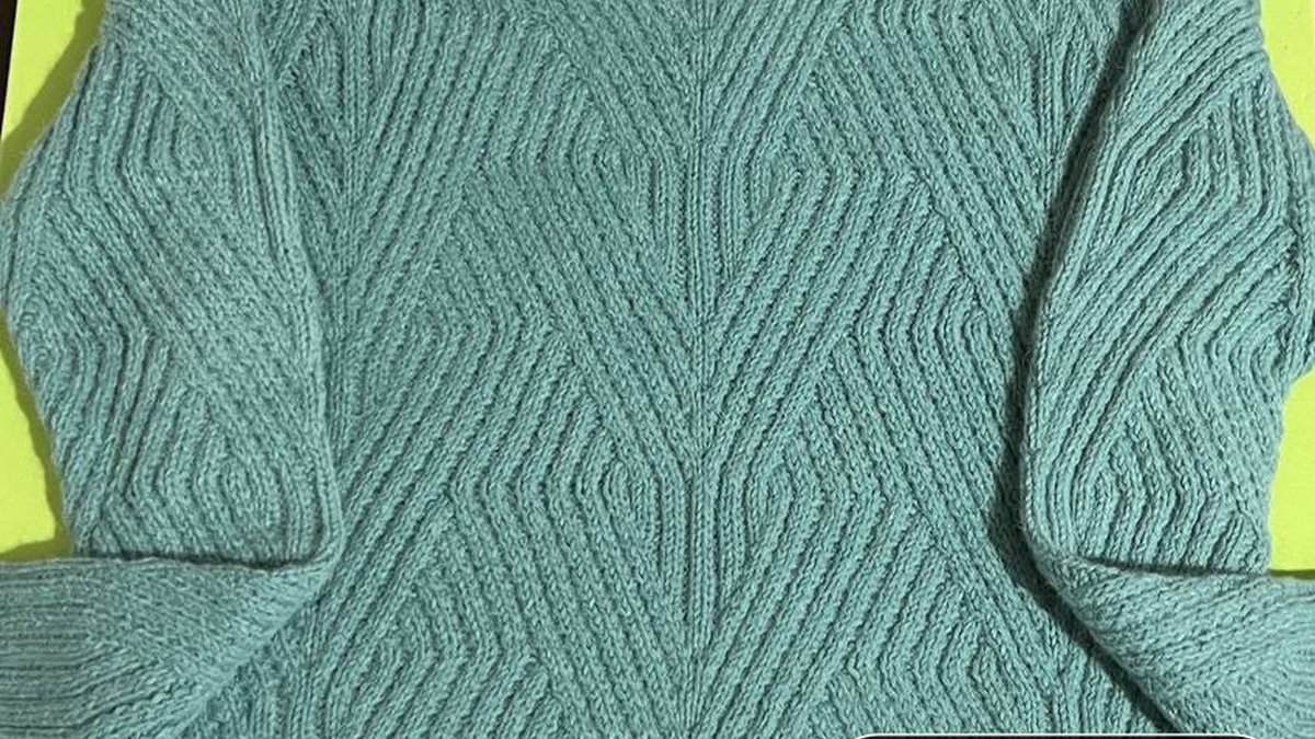 Для создания этого свитера использовалась техника круглого вязания с иглой. Основной узор представляет собой сложную комбинацию из направленных стрелок, которые требуют внимания и опыта при сборке. Такая техника позволяет добиться цельной структуры изделия без швов, что делает его особенно комфортным. Сначала на круговые спицы набирается нужное количество петель для горловины, затем переходят на формирование реглана, плавно расширяя изделие до полного объёма. В этом проекте используется резинка 2х2, как в начале, так и по краям рукавов и талии для формирования аккуратного края. Специфический узор стрелок достигается путем многих повторений и вариаций лицевых и изнаночных петель. Комплексный узор и чистое выполнение требуют значительной концентрации и практики, но результат действительно стоит затраченных усилий.