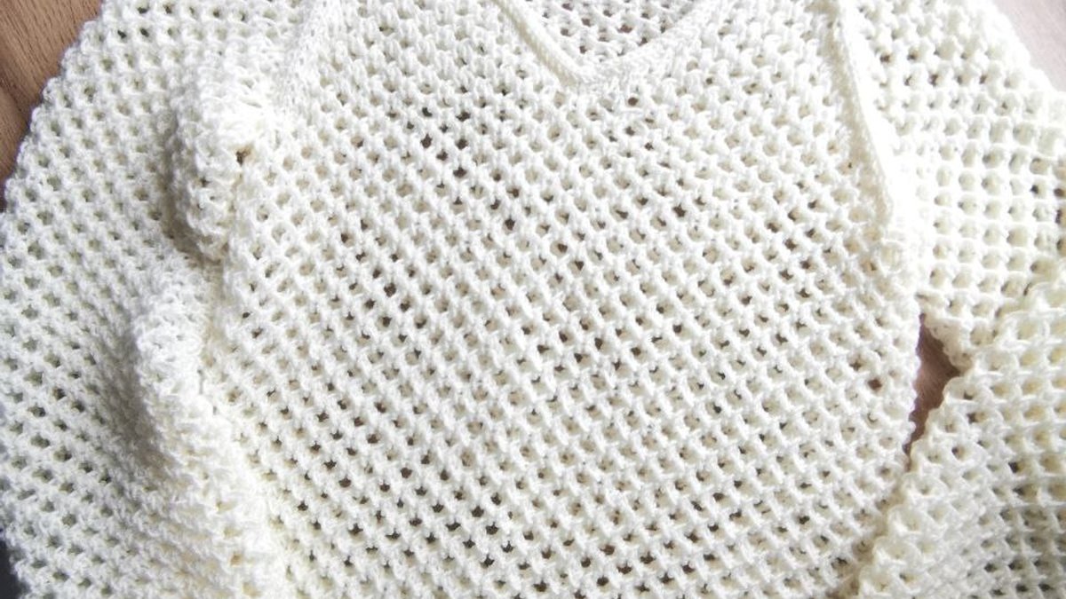 Этот свитер выполнен техникой спицевого вязания с использованием ажурного узора для создания лёгкой и воздушной текстуры. Центральная часть выполнена узором "решетка", который добавляет изделию объем и интерес. Рукава также связаны подобным узором, что сохраняет стильность и целостность дизайна. Для обеспечения комфорта и удобной посадки, горловина и манжеты обработаны резинкой, что позволяет свитеру эластично прилегать к телу. Используется круговое вязание на спицах, что предотвращает образование видимых швов и делает изделие более аккуратным и привлекательным. Материалы, использованные для вязания, тщательно подобраны для создания мягкости и воздушности. Благодаря этому свитер получается не только стильным, но и комфортным в носке на любой случай.