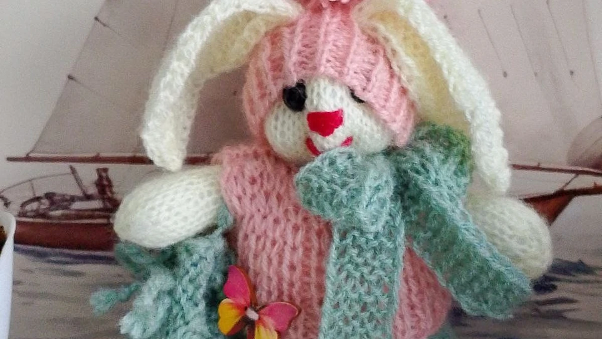 Очаровательная зайка в уютном «зимнем» образе: розовая шапочка с пышным помпоном, мятный шарфик и контрастные синие башмачки создают характер и настроение. Идея со «сборным» гардеробом удачная — игрушка выглядит живой и подарочной. Видно, что работа выполнена с душой, но местами полотно неровное: в лицевой глади заметны перепады натяжения, а детали (ушки, ручки) чуть различаются по плотности. Сборка в целом аккуратная, однако мелкие элементы можно посадить симметричнее, чтобы образ стал более профессиональным.
