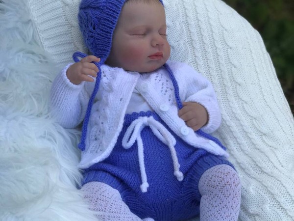 Нежнейший комплект для новорождённого в лавандово-белой палитре: шапочка-капор с рельефными дорожками, лёгкий ажурный кардиган на пуговках, высокие вязаные шортики на кулиске и уютные пинетки с завязками. Гармоничное сочетание гладкого лицевого полотна и деликатного ажура подчёркивает мягкую пряжу и подчёркивает хрупкость малыша. Белый фон пледа с «косами» создаёт спокойную, воздушную атмосферу и подчёркивает насыщенный лавандовый цвет основного комплекта.