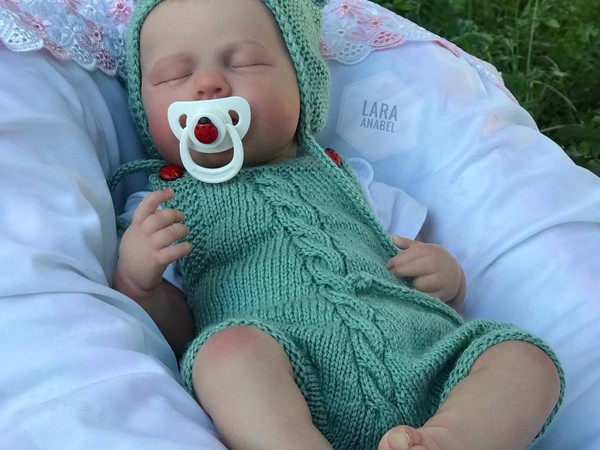 Очаровательный комплект для новорождённого — лёгкий летний ромпер и шапочка с медвежьими ушками, связанные из нежной мятной пряжи. Центральная коса из трёх жгутов придаёт ромперу выразительный рельеф и вытягивает силуэт, а аккуратная резинка по горловине и проймам обеспечивает мягкую посадку без натирания. Широкие бретели застёгиваются на крупные красные пуговицы-божьи коровки, добавляя яркий акцент и упрощая переодевание малыша. Шапочка-боннет продолжает тему — те же пуговки украшают края, а стоячие ушки делают образ игривым. Плотность полотна ровная, петли лежат дружно, что говорит об уверенной руке мастера. Цвет ментола отлично подчёркивает детскую кожу и гармонирует с природным фоном снимка.