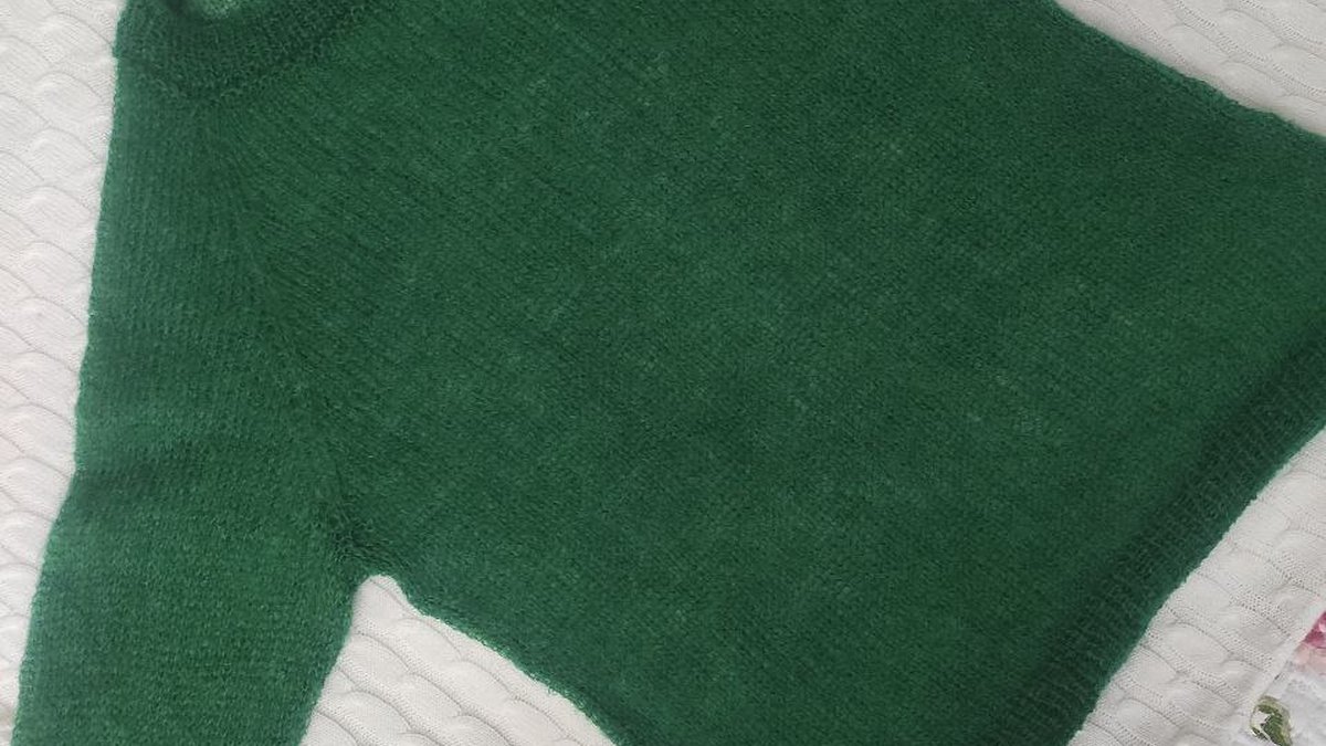 Этот свитер выполнен в технике лицевой глади, которая обеспечивает гладкую и ровную текстуру. Использование лицевой петли делает изделие мягким и приятным на ощупь, идеально подходящим для холодной погоды. Дизайн выполнен регланом, что подразумевает вязание от шеи вниз, обеспечивая отличную посадку на плечах и рукавах. Это позволяет вносить изменения в размерах и примерять изделие во время работы над ним. Пряжа, использованная для этого свитера, отличается мягкостью, добавляется благодаря использованию качественной шерсти или шерсти с добавлением акрила для упрощения ухода. Простой, но элегантный дизайн позволяет использовать этот свитер как в повседневной носке, так и на специальных событиях благодаря универсальному зеленому цвету.