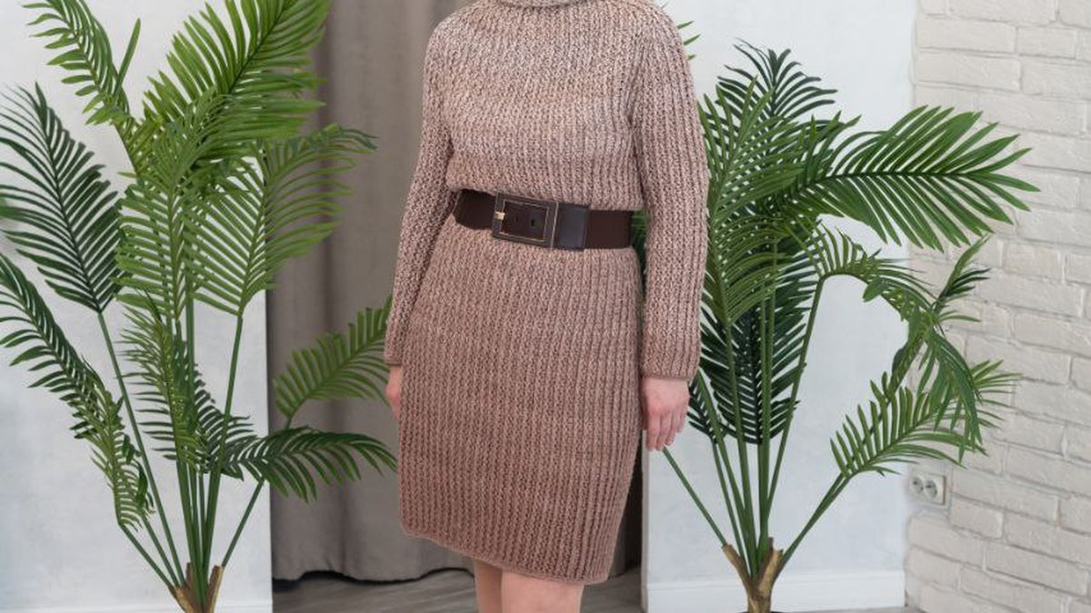 Это изысканное вязаное платье является прекрасным примером мастерства в вязании. С теплым оттенком и элегантным прилегающим силуэтом, платье подчеркивает фигуру и добавляет изысканности. Изделие выполнено с использованием своеобразной техники вязания, создающей глубокую фактуру и обеспечивающей комфорт. Оно дополняется стильным поясом, который акцентирует талию, придавая образу завершённость и стиль.