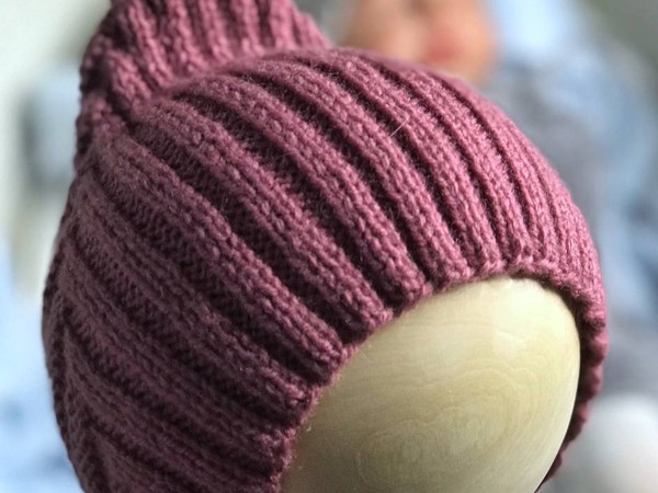 Очаровательный детский боннет-шапочка «эльфийский колпачок» связана упругой резинкой, образующей аккуратные вертикальные дорожки. Мягкая припылённо-розовая мериносовая пряжа подчёркивает фактурность и создаёт нежный, уютный образ. Уверенное закрытие макушки формирует выразительный остренький «хохолок», который смотрится очень мило на детской головке. Завязочки из той же пряжи обеспечивают хорошую посадку и добавляют практичности. На фоне размытых оттенков съёмки шапочка выходит на первый план, позволяя рассмотреть качество петель и ровность натяжения нити.