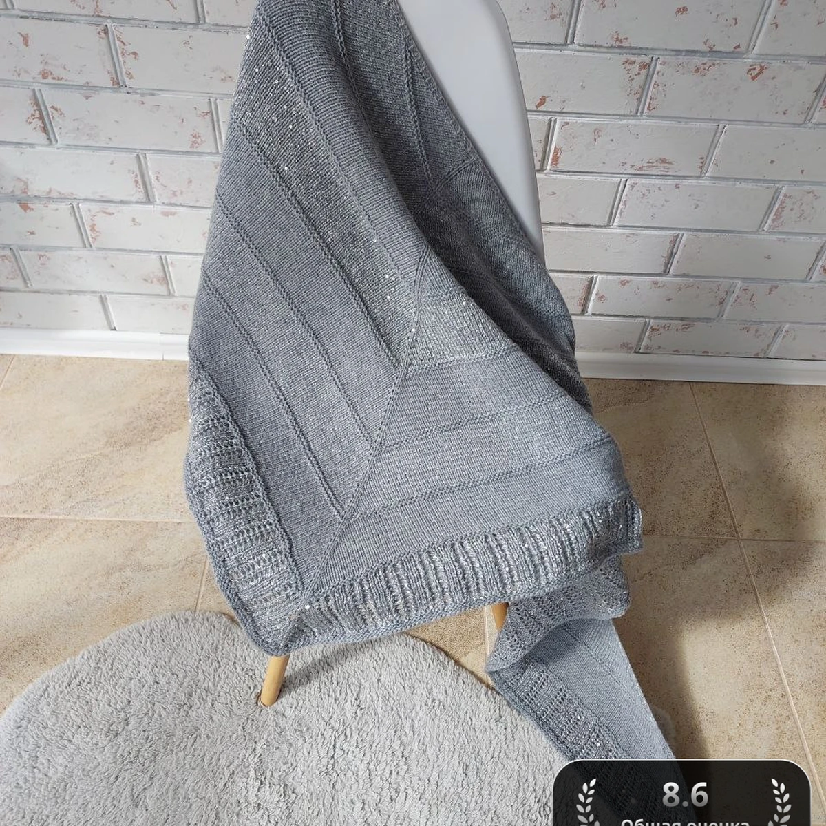 Для этого пледа использовалась спицатая техника. Основа выполнена лицевой гладью с вкраплениями рельефных полос. Края оформлены резинкой 2x2, что добавляет изделию идеальную формоустойчивость и позволяет краям не загибаться. Узор геометрических мотивов выполняется с чередованием лицевых и изнаночных петель, создавая интересный визуальный эффект. Вязание пледа требует равномерного натяжения нити для достижения гладкости и аккуратности стежка. Пряжа должна быть средней толщины для создания приятной текстуры и обеспечения тепла.
