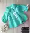На фото уютный детский комплект: плюшевая мятная кофточка/пальтишко с отложным воротничком, белой окантовкой по краям и манжетам, крупными белыми пуговицами и декоративной кулиской со шнурком. Фактура мягкая «микроплюш», выглядит очень нежно и тепло. Внизу — белые пинетки с аккуратными розочками-декором. Сочетание мятного и белого смотрится свежо, «на выписку» или для прогулок — просто прелесть. Фото понятное, изделие видно полностью, но немного пересветлено.