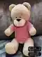 На фото мягкий плюшевый мишка в аккуратном вязаном свитерке пыльно‑розового оттенка. Свитер выполнен спицами с выразительной центральной косой (жгутом) и вертикальными «дорожками», по краям видны ровные планки/окантовки — вещь сидит на игрушке очень опрятно. Цвет свитера прекрасно контрастирует с бежевым плюшем и делает образ особенно уютным. Фото понятное и доброжелательное, изделие хорошо читается, хотя фон дивана немного «съедает» контраст.