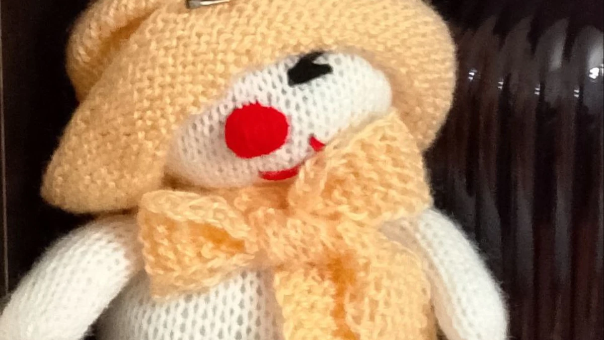 Этот очаровательный снеговик выполнен с использованием вязания спицами. Его белое тело, яркие красные акценты и нежно-желтая шапочка и шарф создают уютный и радостный образ, который подарит радость как детям, так и взрослым.