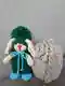 Очаровательный зайка-амигуруми в пушистой зелёной «шубке» и с аккуратными голубыми башмачками выглядит очень живо и по-доброму, особенно благодаря контрастному носику и бантику. Рядом — объёмная серая шапочка/чепчик с выразительной косой и завязками: фактура плотная, рельеф читается. Работа в целом аккуратная, но на игрушке местами заметна разная плотность полотна и чуть грубоватое оформление мордочки (крепление/вышивка просится ровнее). Фотография понятная, без лишнего, но света и композиционной «витрины» немного не хватает.