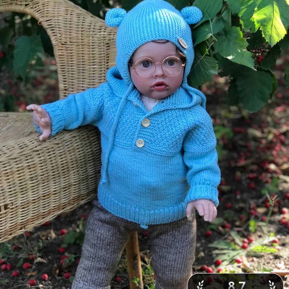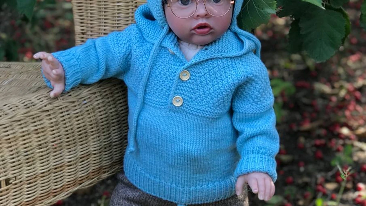 На фото – очаровательный детский комплект: нежно-голубой пуловер-толстовка с капюшоном-«медвежонком» и ушками в сочетании с классическими меланжевыми брючками. Верхняя часть выполнена платочной вязкой крупным зернышком, плавно переходящей в гладкое полотнище тела, что создаёт приятный тактильный контраст и подчёркивает форму. Аккуратная резинка 1х1 по низу и манжетам мягко облегает, а деревянные пуговки добавляют уютный, винтажный штрих. Брючки связаны полупатентным узором, благодаря чему держат форму и остаются эластичными, а высокая манжета согревает ножки. Цветовое сочетание холодного неба и тёплого льна выглядит естественно и подходит для любой прогулки.