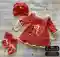 Очаровательный малышковый комплект из коралловой мериносовой пряжи: ажурное платьице с лифом лицевой гладью и роскошным клиновидным узором «листья» по подолу, дополненное контрастной молочной обвязкой «рачий шаг» и тонким I-cord шнурком на талии и манжетах. Украшение – воздушный кружевной воротничок и весёлые смайлик-пуговки. Тюрбан-чепчик связан узором «рис» и собран в эффектный бантик, подчеркнутый малюсенькой ромашкой. Носочки-следочки повторяют ажур платья и фиксируются шнурками. Комплект смотрится нежно, нарядно и очень современно, идеально подойдёт для фотосессии или торжества.