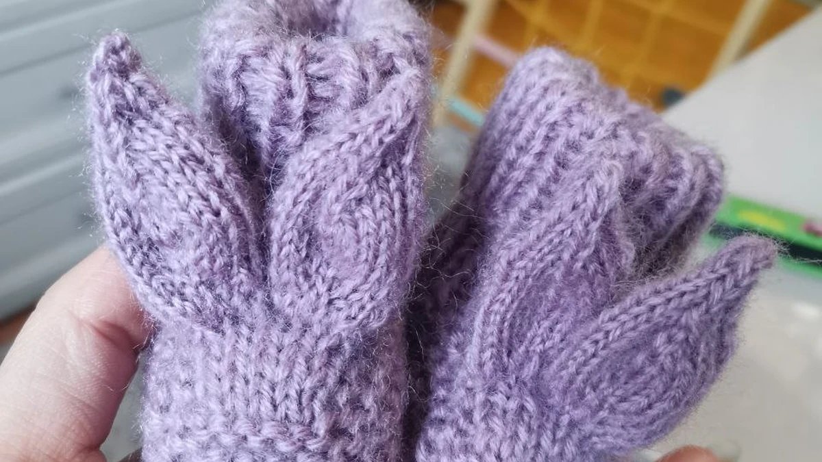 Очаровательная пара лавандовых пинеток, выполненных спицами из пушистой пряжи с лёгким ворсом. Самой яркой деталью выступают объёмные «уши»-лепестки, аккуратно вывязанные лицевой гладью и подчёркивающие милый, сказочный характер изделия. Носочек связан платочной вязкой для мягкости и эластичности, а голенище оформлено резинкой 1×1, чтобы пинетки хорошо держались на маленьких ножках. Нежный пастельный цвет подчёркивает пушистую текстуру, создавая ощущение уютного облачка.