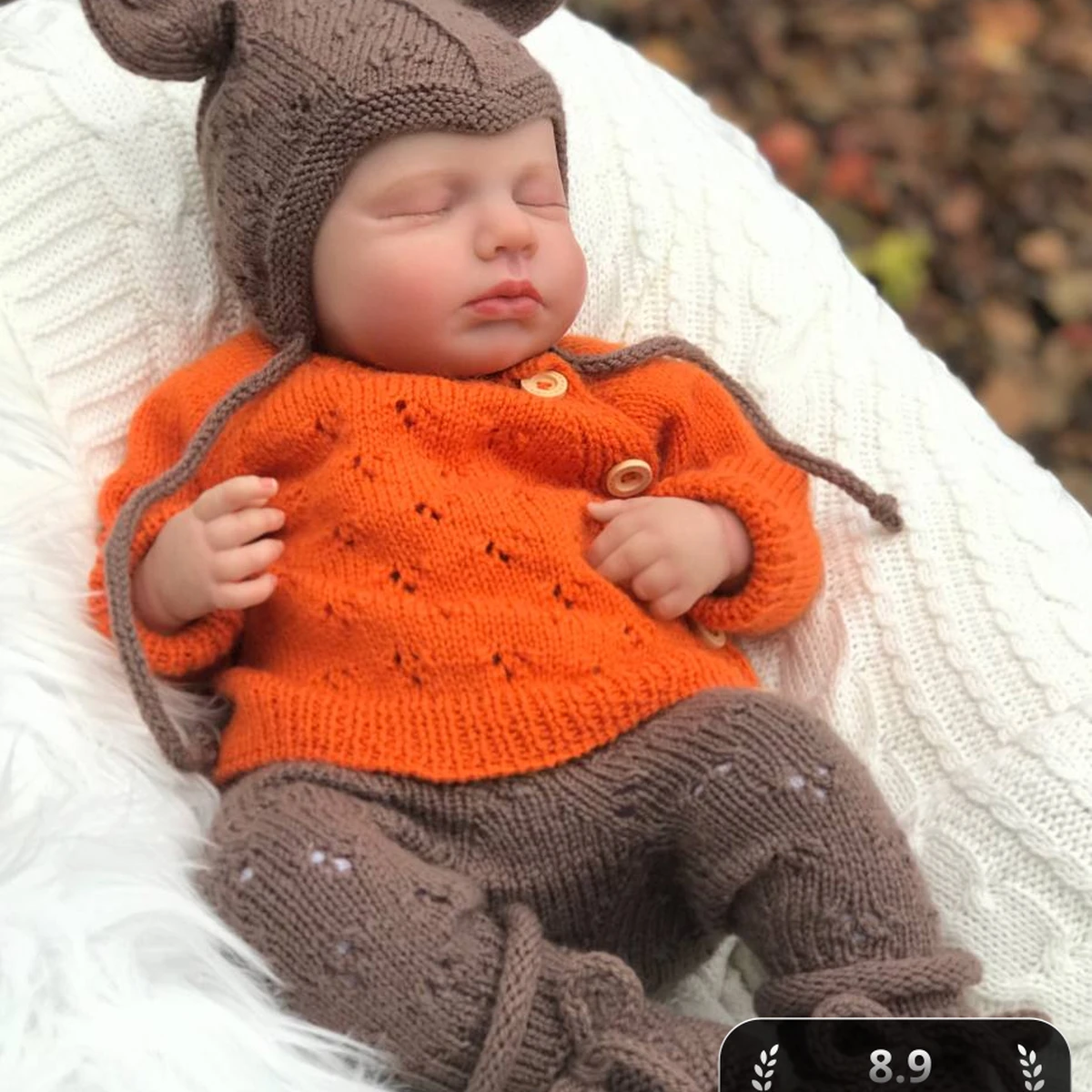 Очаровательный детский комплект из четырёх предметов: ярко-оранжевая кофточка на пуговках с ажурными дырочками, коричневые штанишки с рельефным узором, пинетки-«топотушки» на манжетах с завязками и шапочка с забавными ушками. Стежки ровные, полотно гладкое, аккуратные прибавки по линии реглана и продуманные убавки в шапочке. Гармоничное сочетание тёплого тыквенно-оранжевого и спокойного кофейного оттенка создаёт осеннее настроение и подчёркивает «лесную» тематику. Комплект выглядит уютно и профессионально связанным, отлично сидит на малыше и идеально подходит для фотосессий и прогулок в прохладную погоду.