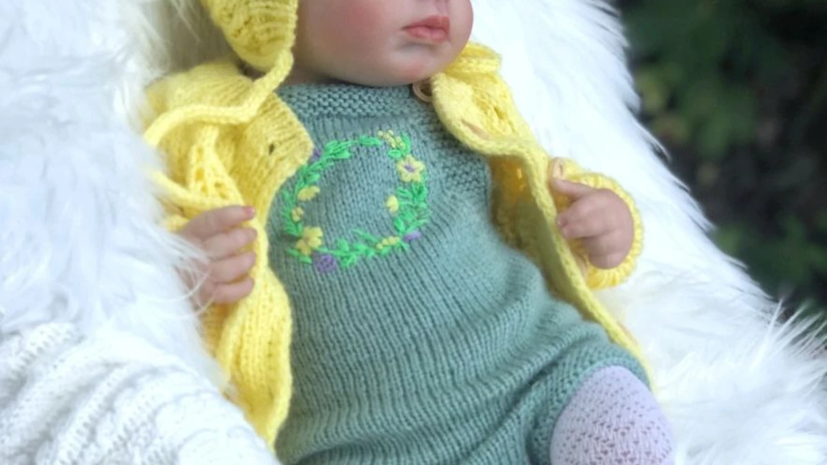 Очаровательный детский комплект из трёх предметов: мягкий ромпер цвета шалфея с вышитым веночком из мини-цветочков, ажурная шапочка-капор и лёгкий кардиган лимонного оттенка. Плотная гладь ромпера подчёркивает чистоту линий, а мелкая машинная вышивка добавляет игривый акцент. Капор связан рельефным узором «листья», создающим объём и хорошую посадку вокруг личика, а скрученные шнурки надёжно фиксируют шапочку. Кардиган выполнен лицевой гладью с аккуратной планкой, украшен крохотными пуговками-пупырышками в тон. Яркое сочетание свежего жёлтого и спокойного зелёного дарит весеннее настроение и нежность, идеально подходящую для новорожденных фотосессий или прогулок в тёплый день.