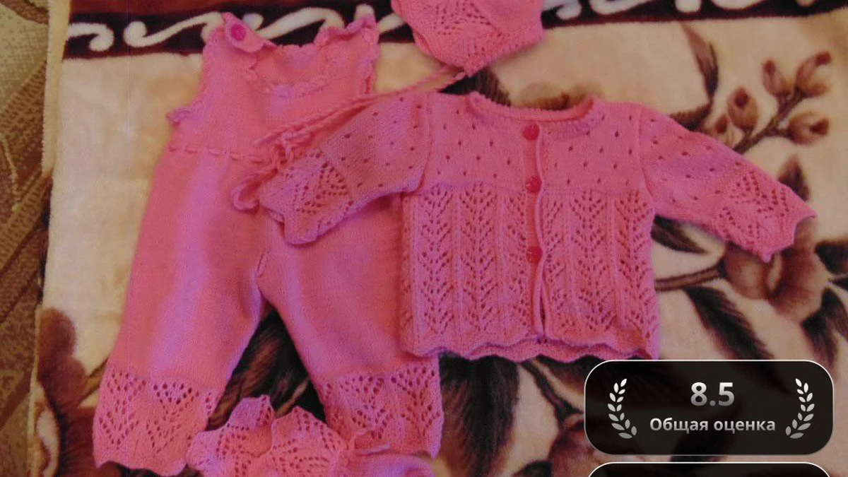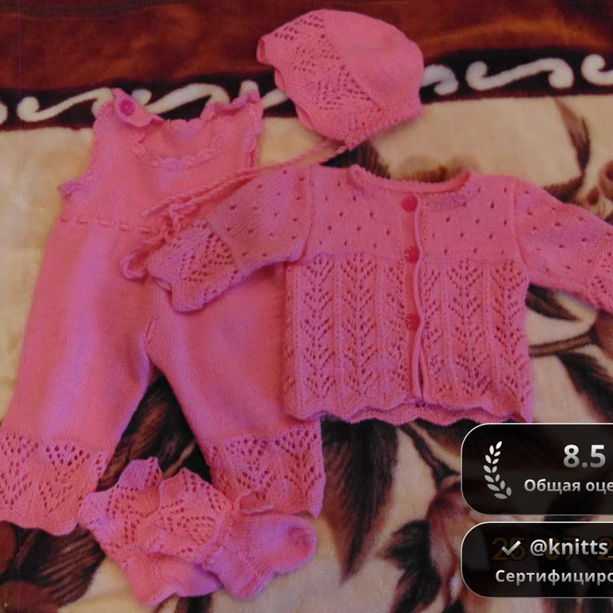Для создания этого замечательного комплекта был использован классический метод вязания спицами с применением ажурных узоров. Ажурные узоры требуют аккуратности и внимательности, так как необходимо четко соблюдать последовательность накидов и убавок. Этот узор добавляет изделию легкость и воздушность, что особенно подходит для детских вещей. Комбинезон выполнен платочной вязкой с ажурными вставками по краям и в области воротника. Это обеспечивает изделию эластичность и необычный внешний вид. Шапочка и пинетки связаны круговыми спицами, что позволяет избежать швов и делает изделие более комфортным для малыша. Такие изделия требуют внимательного выбора пряжи и размера спиц для достижения идеальной плотности вязания, чтобы изделие было не только красивым, но и практичным в эксплуатации.