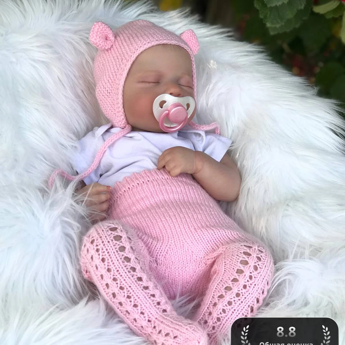 Нежнейший комплект для новорождённого в пастельно-розовом оттенке: шапочка-шлем с забавными медвежьими ушками, высокие штанишки и ажурные колготки-пинетки, связанные единой нитью. Плотная лицевая гладь плотно обнимает головку и тельце, а ажурный «листочек» на ножках создаёт воздушную текстуру. Мягкая гипоаллергенная пряжа даёт приятное прикосновение, эластичная посадка – свободу движения. Фото на пушистом пледе подчёркивает трогательность образа и делает оттенок пряжи ещё более деликатным.