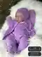 В кадре – очаровательный комплект для новорождённого в нежном сиреневом цвете: фактурная шапочка-чепчик с косами и шишечками, уютный кардиган с теми же элементами, гладко вывязанный боди/джемпер, мягкие штанишки на резинке и миниатюрные пинетки-угги. Единство оттенка создаёт цельный образ «сладкого сна», а повторение узора на шапочке и кофточке придаёт комплекту профессиональную законченность. Петли ровные, плотность стабильная, переходы между деталями аккуратные, пуговки удобно застёгиваются. Работа выглядит нежно, приятно на ощупь и явно выполнена с любовью.
