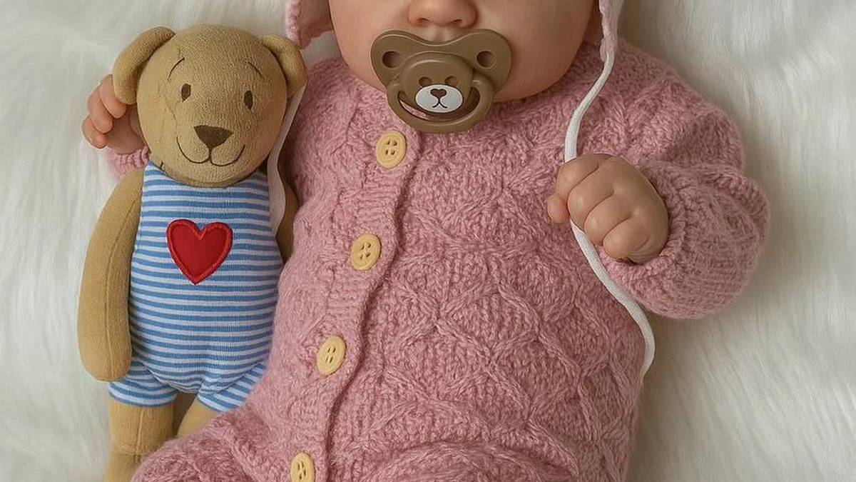 На этой фотографии мы видим великолепный вязаный комплект для малыша, включающий красивый розовый комбинезон и очаровательную шапку с ушками. Эти вещи превосходно исполнены и отлично подходят для защиты малыша в прохладную погоду. Комбинезон с пуговицами на передней части выполнен с особым вниманием к деталям, а шапочка добавляет милое очарование благодаря своим ушкам.