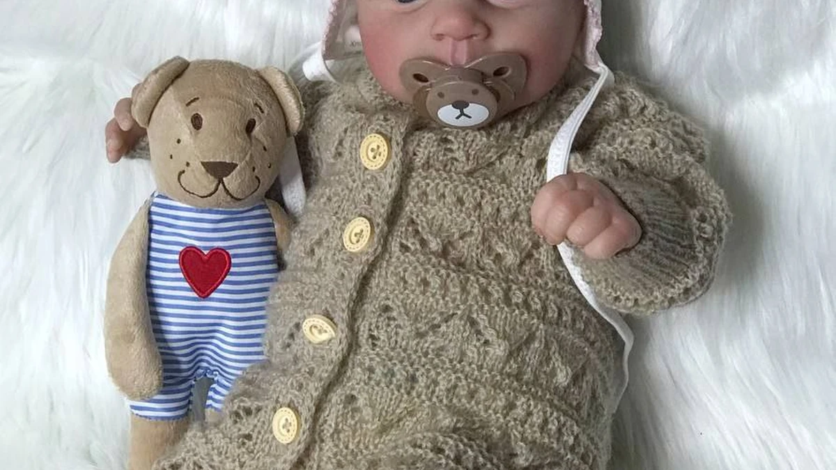 На фотографии вы видите очаровательный детский комбинезон, выполненный в технике вязания спицами. Комбинезон из овечьей шерсти, украшен изящным узором и деревянными пуговицами. Он идеально сочетается с симпатичным белым чепчиком с ушками и нежными розовыми элементами, который добавляет образу игривости и уюта. Вся композиция завершается плюшевым мишкой, который придаёт фотографии гармонию и уют.