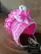 Нежная детская чепочка-«зефирка» связана яркой розово-малиновой пряжей с контрастными белыми акцентами. Основное полотно выполнено платочной вязкой ровными полотнами, что даёт мягкую и эластичную текстуру. По окружности пышной волной проходит двухъярусный зубчатый оборок, подчёркнутый белой обвязкой «рачий шаг». Белые бусины-жемчужинки разбросаны по линии рёбер, добавляя праздничный блеск. Завлекает крупный двойной бантик из атласных лент фуксии и снежно-белого цвета, украшенный центральной жемчужиной. Мягкие завязки из айкорда надёжно фиксируют изделие под подбородком малыша. Чепчик выглядит будто взбитое мороженое и станет милым акцентом на первых фотосессиях или торжествах крохи.