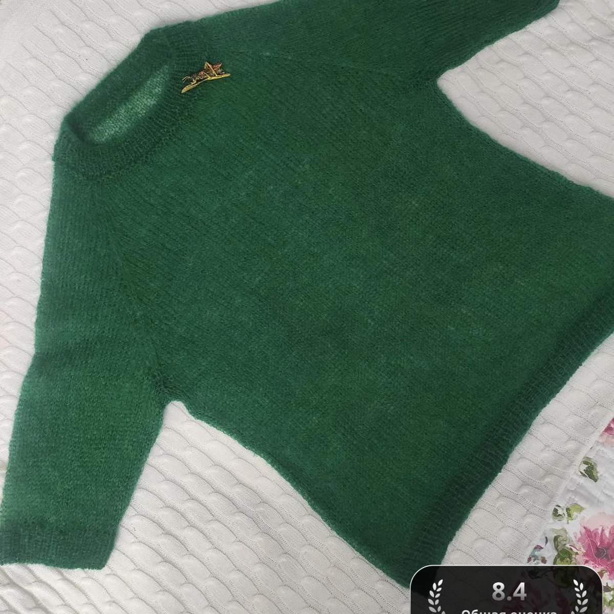 Этот очаровательный свитер связан в насыщенном зеленом цвете, создавая уютное и стильное изделие. Простота дизайна прекрасно сочетается с качеством вязки, делая его универсальным выбором для повседневного гардероба. Маленькая декоративная застёжка на плечах добавляет необычную деталь, придавая изделиям индивидуальность и легкость.