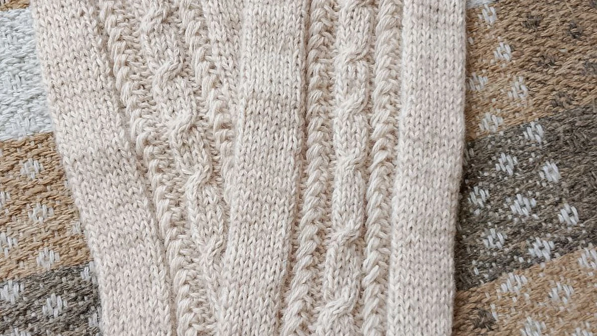 Эти гетры выполнены спицами, используя классический набор петель и лицевую гладь в сочетании с красивым кабельным узором. Для начала работы было набрано необходимое количество петель для резинки, используя одинарную или двойную резинку для упругости. Затем работа продолжается по кругу, что позволяет избежать швов и придать изделию непрерывность. Кабельный узор добавляется постепенно, при помощи дополнительной спицы для перекрещивания петель. Такая техника требует слегка большей сосредоточенности и опыта, но результат оправдает усилия, добавив изделию роскоши и тепла. В завершение резинка, связанная с плотностью чуть меньше основной части, позволяет изделию комфортно закрепляться на ноге, не соскальзывая и не причиняя неудобств.